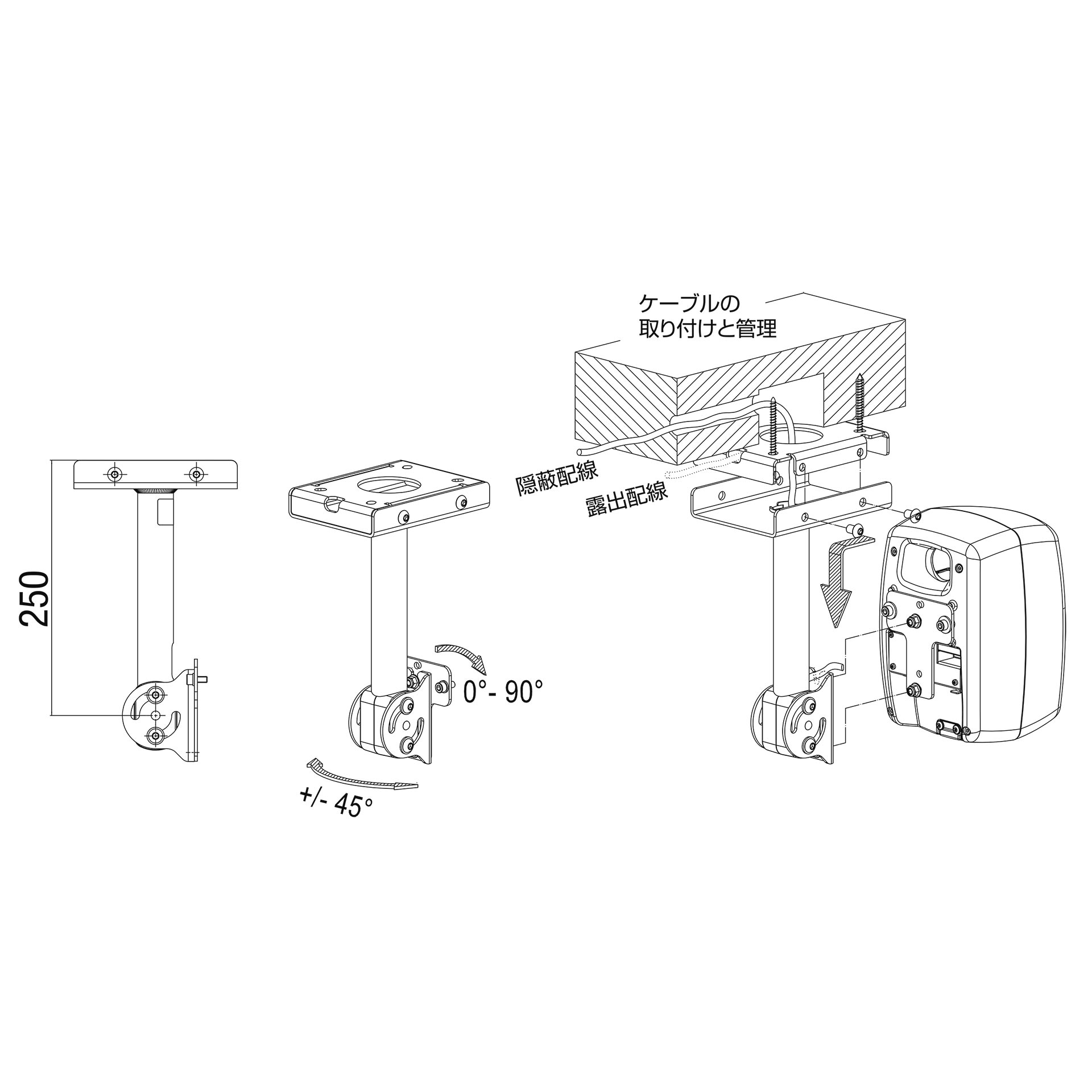 丈夫で信頼性の高いシーリング・マウントで、天井から250mmの位置にGenelecスピーカーを設置します。ブラックおよびホワイト(パウダー・コート仕上げ)から選択できます。