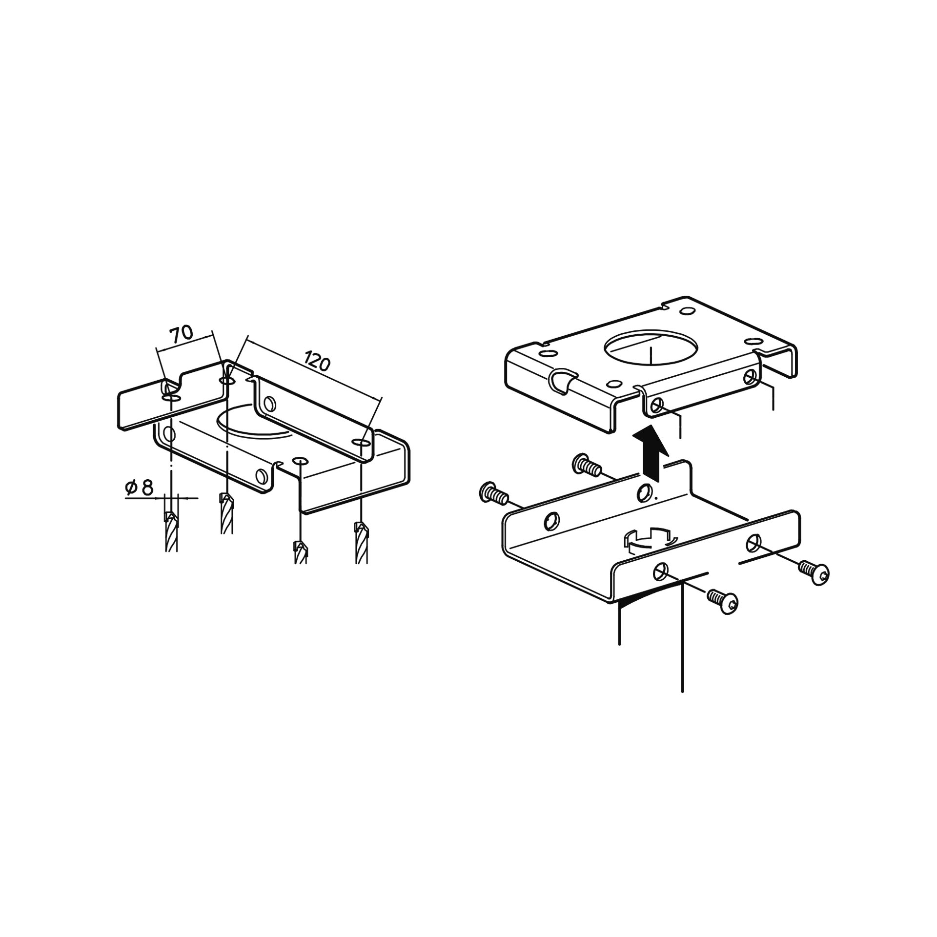 スピーカーの取り付けには付属のフラットタイプのTアダプター・プレートを使用しますが、例外として8320および8330で使用する場合、スピーカー背面のポートやボタンへの干渉を避けるため、コの字型のTアダプター・プレート(8000-454)を別途購入し使用する必要があります。