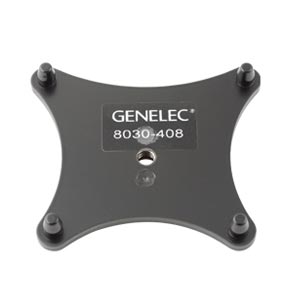 お使いのスピーカーに対応するスタンド・プレート(別売)を8000-450 TRIOLスタンド上部に固定。Genelecスピーカーに付属されているゴム製のインシュレーター/デカップラーのIso-Podをその上に置くことで、安定した設置ができます。