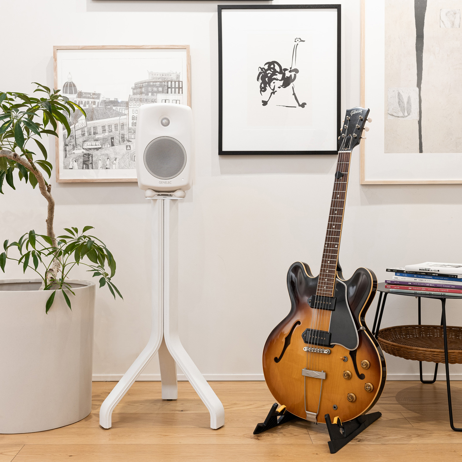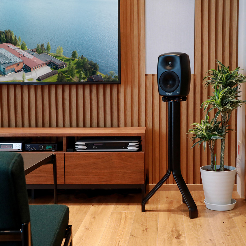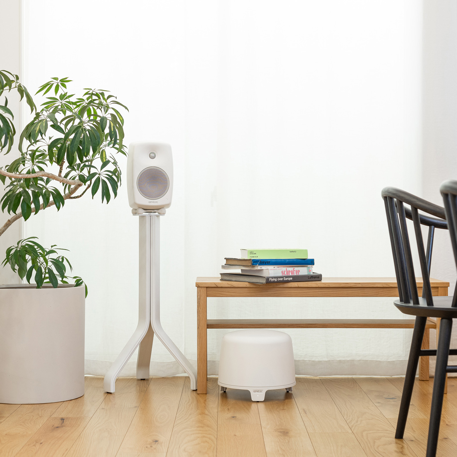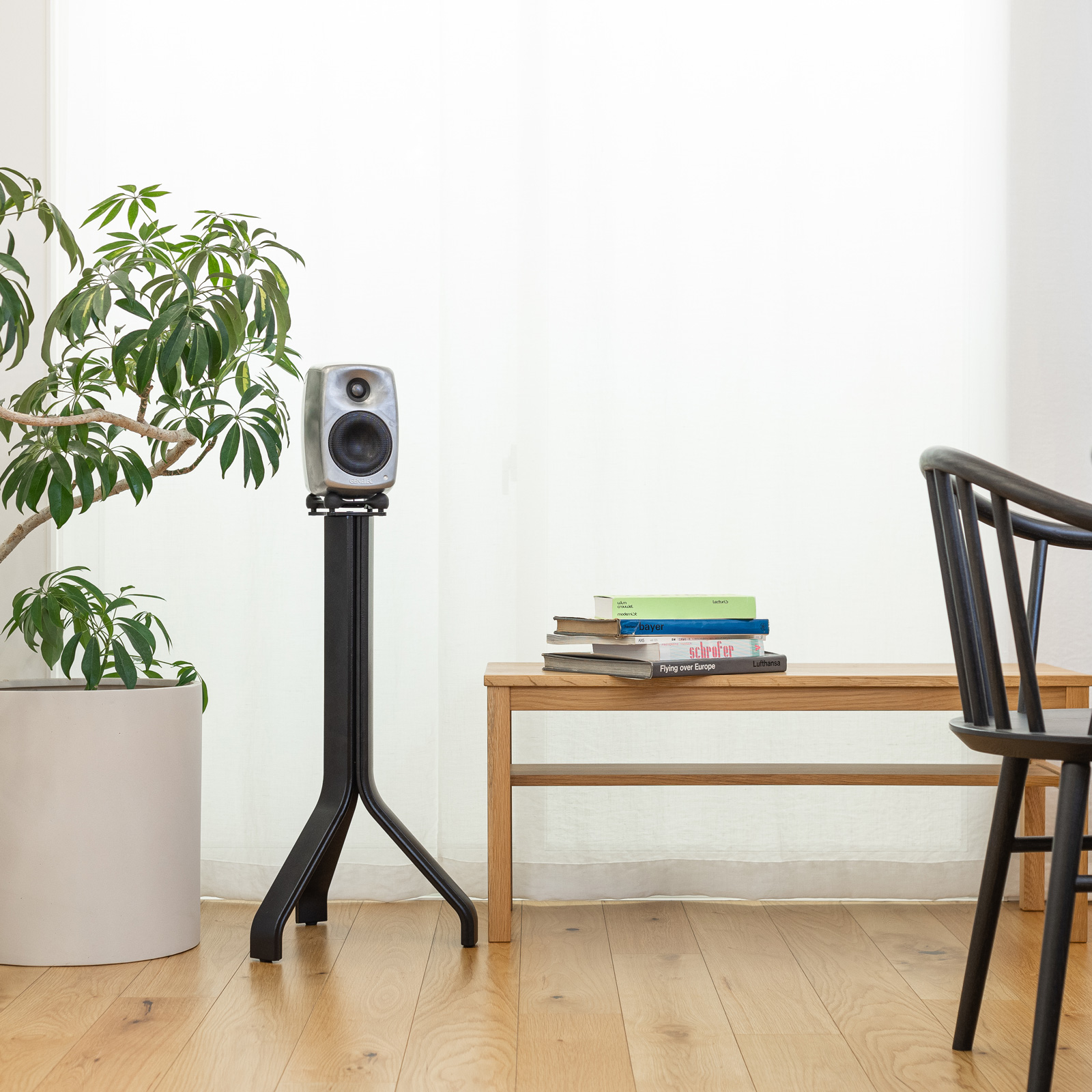 世界的なインダストリアル・デザイナー、ハッリ・コスキネンとのコラボレーションによって生まれた8000-450 TRIOLスタンドは、ミニマルな北欧デザインと実用性を兼ね備え、ソファなどに腰掛けた際の最適な高さにスピーカーを設置できます。カラーはブラックおよびホワイトから選択でき、Gシリーズ・アクティブ・スピーカーのG Two、G Three、G Four、アクティブ・2ウェイ・モニターの8020、8030、8040、スマート・アクティブ・2ウェイ・モニターの8320、8330、8340、The Onesの8331に適合しています。