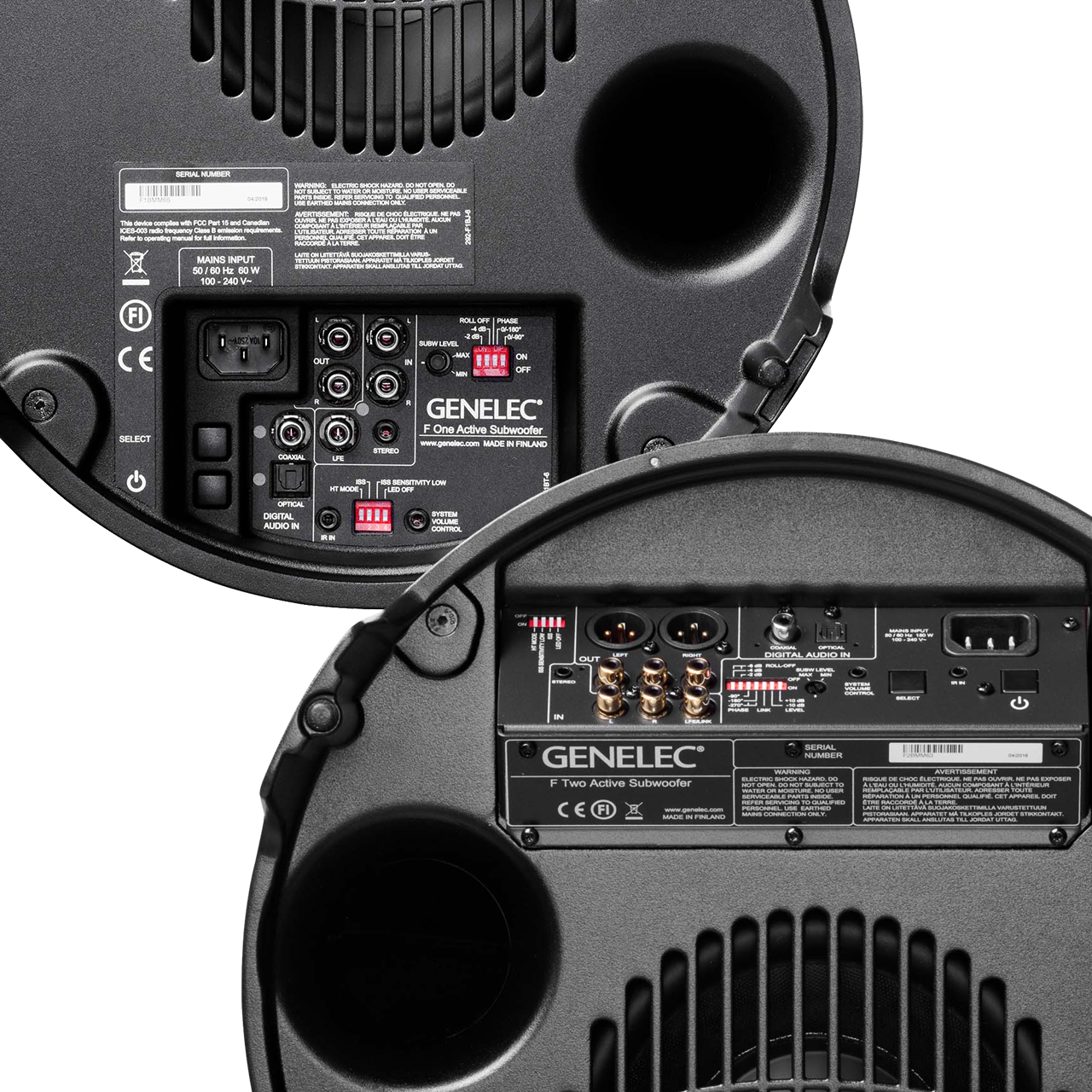 2.1ch Home Setで用意されるF One/F Twoは、RCAのアナログ入力に加え同軸(COAXIAL)および光デジタル(OPTICAL)入力も装備。テレビやストリーマーなど様々な機器と接続できる、オーディオのハブとしての接続性を備えます。また、オーディオ信号の入力状況によって自動的に電源のオン/オフを切り替えるISS(Intelligent Signal Sensing)自動スタート機能や、セッティングによってサウンドの最適化を図ることができるディップスイッチ、お使いのテレビのリモコンのボタンを学習させる機能を備えるなど、リビングでのシステム構築において有効な機能を搭載しております。