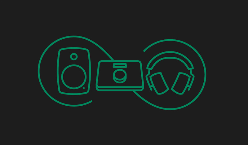 スタジオの外でも正確で効率的な作業が可能に。8380Aは、UNIOエコシステムと高度に連携し、ヘッドホンとスピーカーをシームレスに切り替えながら、ステレオからイマーシブまでの正確なモニタリング体験を提供します。