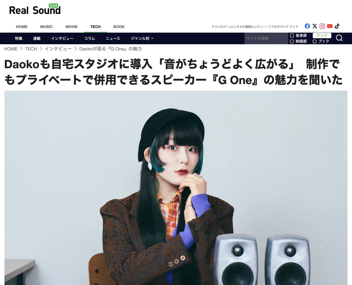 Daoko 音の良さに感動するというのは、音楽を楽しむ上で大事な気持ちだなと思っているんです。私自身も学生時代、ちょっといいモニターヘッドフォンを買って、あまりにも普段聴いている音楽と別物でびっくりして、音楽がもっと好きになったし、「耳が気持ちいいって楽しいんだ」と思った経験があるんですよ。だから手を出しやすい価格帯というのは大きいんじゃないかなと。そこで入り口が狭まってしまう人もいますから。なので、初めて音楽制作をする方や、ちょっといいスピーカーを試してみたいという人に『G One』をおすすめしたいです。クオリティー的にはプロの要求にも応えられるモデルだと思うので。